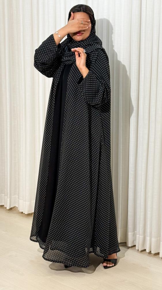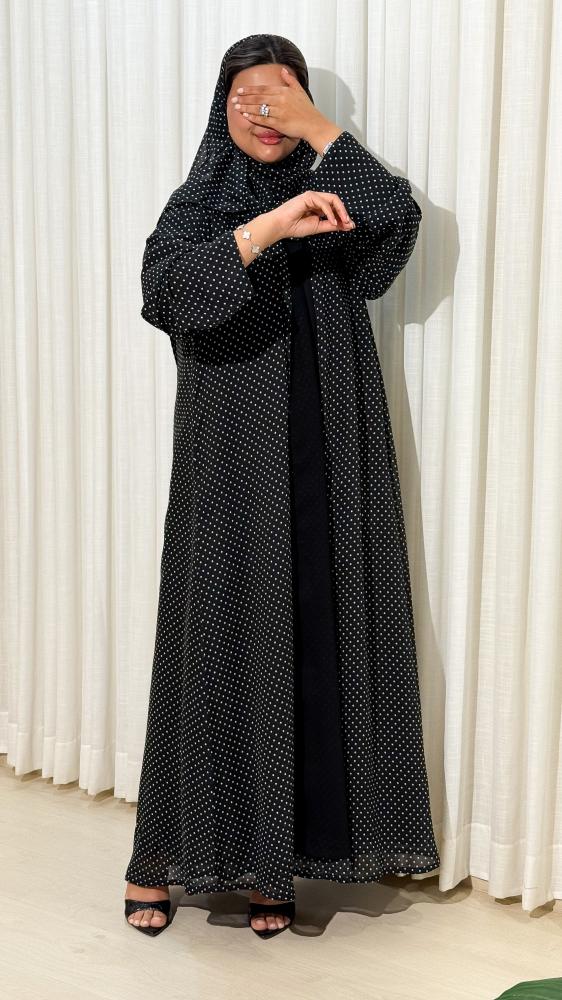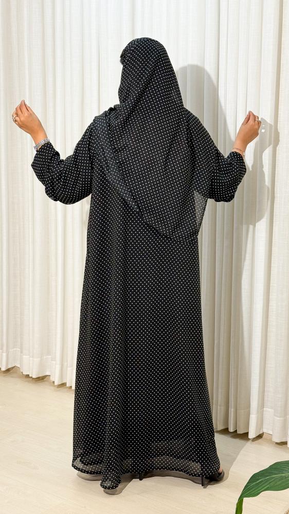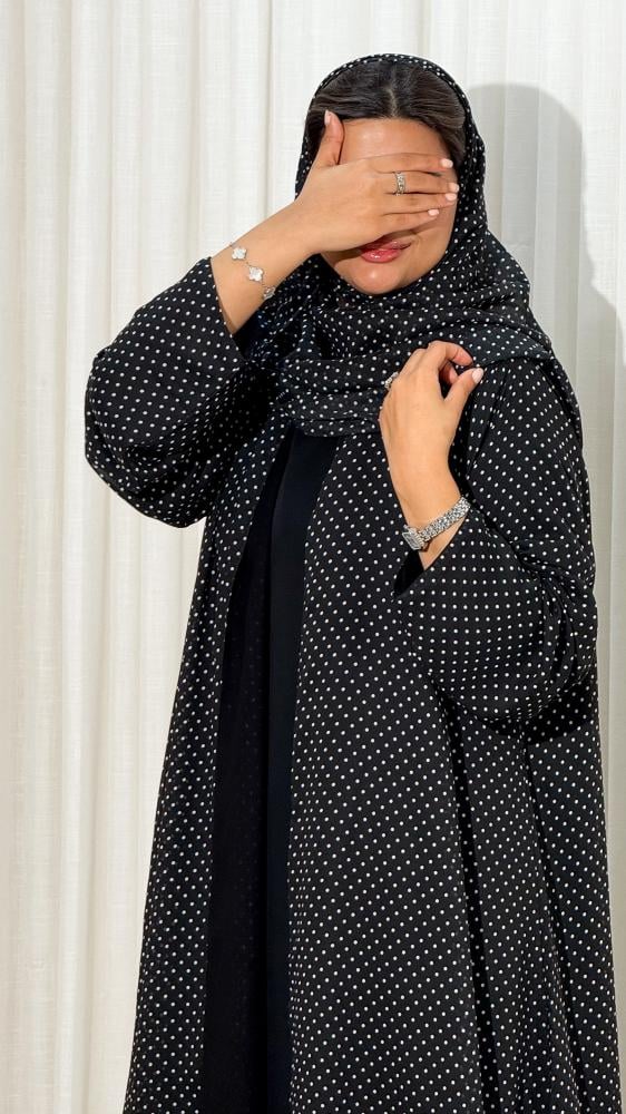 - عبايات منقطة قماش الشيفون يوفّر خفة عالية على الجسم حيث يمنحك راحة ملحوظة خلال ساعات اللبس الطويلة.